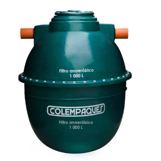 Tanque de tratamiento ovoidal Colempaques verde con filtro